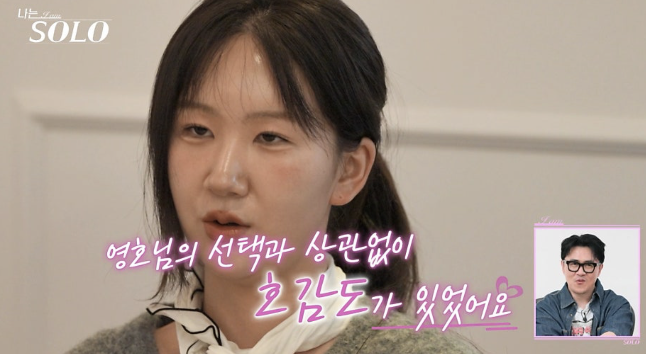초반엔 영호와의 대화에서 웃음을 주고받으며 분위기가 좋아 보였지만, 결국 옥순의 눈에 들어온 건 단연 영수였다.