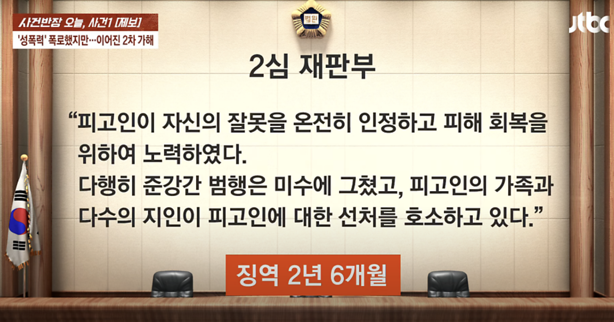 '1심 징역 5년'→'2심 2년 6개월'… '씁쓸한' 판결!